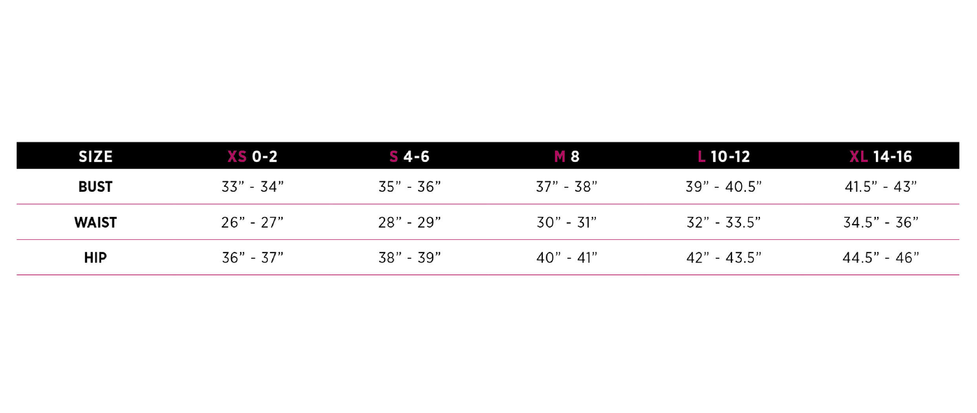 Find your perfect fit with LIJA. Our design team ensures a “true fit”– customers know products will be consistently flattering. Use the table below to determine the correct size for your measurements and start shopping.
