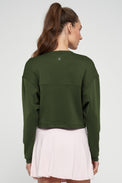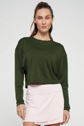 • Crewneck • Horizontal seam across upper bust extending down part of the arm • Subtle dolman sleeve • Self cuff • 20" length • Relaxed fit