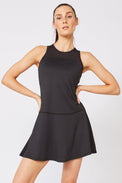 The Breeze Dress is designed with a gorgeous textured fabric. It has a simple crewneck and provides great coverage. The dropped waistband provides a flattering fit for most body types. The back has a centre back panel with tonal mesh for texture & breathability. This dress has a 32 1/2" length and a body skimming fit.