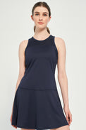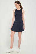 The Breeze Dress is designed with a gorgeous textured fabric. It has a simple crewneck and provides great coverage. The dropped waistband provides a flattering fit for most body types. The back has a centre back panel with tonal mesh for texture & breathability. This dress has a 32 1/2" length and a body skimming fit.