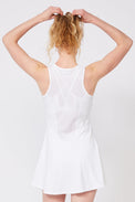 The Breeze Dress is designed with a gorgeous textured fabric. It has a simple crewneck and provides great coverage. The dropped waistband provides a flattering fit for most body types. The back has a centre back panel with tonal mesh for texture & breathability. This dress has a 32 1/2" length and a body skimming fit.