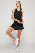 Sleek, versatile, and effortless—our Daily Tank transitions seamlessly from court to café. This easy, go-to ladies tennis tank is slightly cropped with a 20" body length and designed to flatter without fuss, perfectly skimming the waistband of your favorite skort, shorts, or leggings.