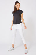 Effortless sophistication meets subtle edge in the Deep V Tee. Designed with a body-skimming fit and a classic crew neckline, this versatile piece is elevated by a tonal mesh V-panel that adds texture and modernity. With a standard 7" sleeve length and minimalist silhouette, it’s the perfect foundational tennis tee for your active wardrobe—refined enough for post-workout plans, and breathable enough for high-performance movement.