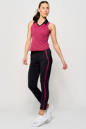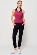Our go-to golf pant is our Driver Pant, a slim fitting "pegging" (pant-legging) offering a sleek, streamlined silhouette. Designed with tonal tuxedo panels down the side seams for an upscale look. This pant boasts two front slash pockets and one back patch pocket for additional storage. The slim waistband highlights belt loops which are more of as an aesthetic but still functional. This pant was built for golf but is a flattering option for weekend or travel.