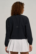 Meet the Edge Jacket: a lightweight, stretch‑woven pullover designed for effortless layering and modern sport style. The contrast front zipper sharpens the silhouette adding a pop of color. Elastic cuffs and hem keep the fit secure without feeling tight, and the relaxed cut moves with you from warm‑up to cool‑down.