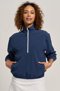Meet the Edge Jacket: a lightweight, stretch‑woven pullover designed for effortless layering and modern sport style. The contrast front zipper sharpens the silhouette adding a pop of color. Elastic cuffs and hem keep the fit secure without feeling tight, and the relaxed cut moves with you from warm‑up to cool‑down.
