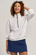 Meet the Edge Jacket: a lightweight, stretch‑woven pullover designed for effortless layering and modern sport style. The contrast front zipper sharpens the silhouette adding a pop of color. Elastic cuffs and hem keep the fit secure without feeling tight, and the relaxed cut moves with you from warm‑up to cool‑down.