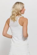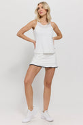 Command attention with the Force Tank —a classic offering feminine, athletic style. This women’s tennis tank blends technical performance with elevated design. The upper bust and back feature tonal opaque mesh panels that add subtle texture and visual depth. This detailing offers a refined contrast to the smooth body fabric.