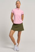 The Patina Skort feels higher waisted with its wider 3" waistband. This is a great partner for a more cropped tank top as it provides more coverage at the natural waist. The a-line silhouette offers a feminine subtle flutter throughout. The ELITE fabric has such a buttery soft hand-feel providing superior comfort.