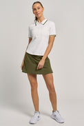 If you're looking for the perfect classic tennis skort that goes with everything, the Patina Skort is the answer. The high-waisted clean a-line style creates a sleek silhouette with subtle volume throughout. This body skimming fit hugs at the waistband and then gradually offers more movement and volume for the hips & hem.
