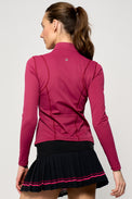 A must-have addition to your active wardrobe, the Nolan Zip Mock blends sporty sophistication with everyday functionality. Crafted from soft, luxurious micro-pique, it features a sleek mandarin collar and a flattering half-zip closure. Thoughtfully designed curved seamlines at the front and back create a feminine, athletic silhouette. A discreet drop-in pocket at the center back hem offers convenient storage for small essentials, making it the ideal layering piece for everything from workouts to weekend outings.