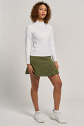 A must-have addition to your active wardrobe, the Nolan Zip Mock blends sporty sophistication with everyday functionality. Crafted from soft, luxurious micro-pique, it features a sleek mandarin collar and a flattering half-zip closure. Thoughtfully designed curved seamlines at the front and back create a feminine, athletic silhouette. A discreet drop-in pocket at the center back hem offers convenient storage for small essentials, making it the ideal layering piece for everything from workouts to weekend outings.