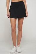 The Patina Skort feels higher waisted with its wider 3" waistband. This is a great partner for a more cropped tank top as it provides more coverage at the natural waist. The a-line silhouette offers a feminine subtle flutter throughout. The ELITE fabric has such a buttery soft hand-feel providing superior comfort.