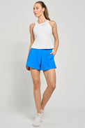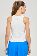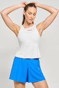 The Peer Tank is a head office favorite, celebrated for its standout neckline detail. A flattering scoop neckline is enhanced with an overlay panel of tonal mesh, creating a modern asymmetrical finish that instantly draws the eye. This thoughtful design continues into the upper back, where the mesh wraps seamlessly for a distinctive look from every angle.