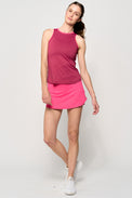 The Patina Skort feels higher waisted with its wider 3" waistband. This is a great partner for a more cropped tank top as it provides more coverage at the natural waist. The a-line silhouette offers a feminine subtle flutter throughout. The ELITE fabric has such a buttery soft hand-feel providing superior comfort.