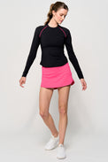 The LIJA Pop Skort is a fresh, sleek addition to your active wardrobe with its straight skirt silhouette with a curved hemline that offers a little peek of the undershort on the sides. A slight flutter at the back adds movement and feminine flair, while the body‑skimming fit flatters without restricting.