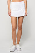 The LIJA Pop Skort is a fresh, sleek addition to your active wardrobe with its straight skirt silhouette with a curved hemline that offers a little peek of the undershort on the sides. A slight flutter at the back adds movement and feminine flair, while the body‑skimming fit flatters without restricting.