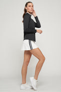 LIJA's Racer Skort is sleek, sporty & ready to move. This tennis skirt is designed for women who crave performance without sacrificing style. With a streamlined silhouette, and contrast striped tape on the side panels, it gives off a sporty vibe and is built for high-intensity play, and everyday versatility.