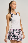 The Starter Tank delivers an old-school sporty aesthetic with a modern edge. Designed with a flattering V-neckline and bold color & print blocking across the upper front and back, it creates a cohesive look that pairs effortlessly with a variety of skort silhouettes and colorways.