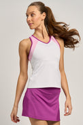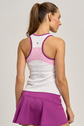 The Starter Tank delivers an old-school sporty aesthetic with a modern edge. Designed with a flattering V-neckline and bold tri-tone color blocking across the upper front and back, it creates a cohesive look that pairs effortlessly with a variety of skort silhouettes and colorways.