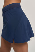 Our Multi Panel Skort is designed with an a-line silhouette which hugs at the waistband but gives you the drape at the hips and flutter at the hem. The mix of solid and mesh tonal fabrics allows this skort to be more lightweight and moves gracefully.