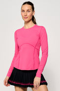 The Titan Top is a customer favorite—and for good reason. Designed with a subtle rib texture and built-in UPF 50+ protection, it’s the perfect blend of style and performance for your active lifestyle. The classic crewneck silhouette is elevated with a flattering underbust seam and princess seams at the front and back, creating a beautifully feminine shape. A sleek 1.5" inset panel runs down the center back, accented with tonal reverse coverstitching for a touch of modern detail. Soft, functional, and effortlessly chic, the Titan Top is your go-to long sleeve for sport, travel, or everyday wear.
