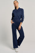Meet LIJA’s Track Pant—a modern essential that blends relaxed comfort with elevated, sporty style. Designed with a wide-leg silhouette, this pant is an effortless addition to your active and off-duty wardrobe. Crafted from our SPORTIF double-knit performance fabric, it offers a slightly structured feel that holds its shape while remaining comfortable. A custom two-tone stripe runs along the outside of each leg, adding a heritage-inspired, athletic edge.