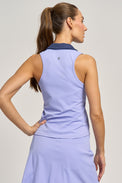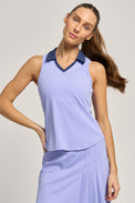 This sleeveless polo offers a timeless v-neck silhouette that’s perfect for both tennis and golf. The subtle racerback design adds a modern, sporty edge, while contrast detailing at the neckline and collar gives it a refined finish. Crafted from premium micro-pique fabric, it delivers the ideal blend of structure, breathability, and performance—keeping you comfortable and confident from the first serve to the final putt.