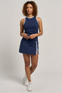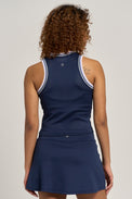 Step onto the court in style with the Varsity Tank — a cropped, performance‑driven top that blends athletic style with modern edge. Crafted from moisture‑wicking, quick‑dry fabric with four‑way stretch, this fitted 19" tank moves with you through every serve, swing, and sprint.