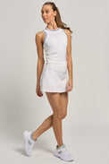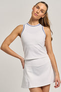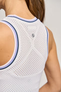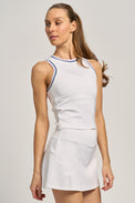 Step onto the court in style with the Varsity Tank — a cropped, performance‑driven top that blends athletic style with modern edge. Crafted from moisture‑wicking, quick‑dry fabric with four‑way stretch, this fitted 19" tank moves with you through every serve, swing, and sprint.